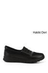 * Gön Hakiki Deri Yuvarlak Burun Dolgu Taban Kadın Günlük Ayakkabı