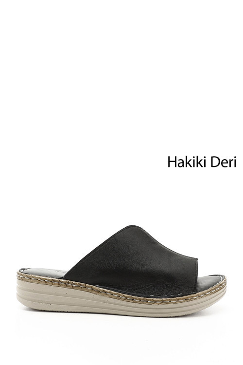 * Gön Hakiki Deri Dolgu Taban Kadın Comfort Terlik