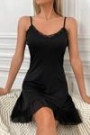 Kadın Siyah Etek Ucu Ve Göğsü Fırfırlı Tül Detaylı Gecelik