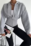Defys Kadın Baskılı Kapüşonlu Crop Sweat Antrasit - Image 1
