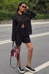 - Rahat kesimi ile günlük kullanım için ideal, siyah renkteki gömlek ve şort takımı.; - Düz deseniyle zamansız bir şıklık sunan bu takım, her ortamda rahatlıkla tercih edilebilir.; - Regular kalıp sayesinde vücut hatlarınıza uyum sağlayarak konforlu bir deneyim yaşatır.; - Uzun boy tasarımı ile hem şık hem de koruyucu bir görünüm elde etmenizi sağlar.; - Pamuk polyester karışımı kumaşı sayesinde nefes alabilirlik ve dayanıklılık sunar.; - Gömlek yakası detayı ile klasik tarza modern bir dokunuş ekler.; - Casual giyim için mükemmel olan bu takım, günlük kombinlerinizde kolayca yer bulur.; - İki parçadan oluşan set içeriği; pratikliği ve uyumu ön plana çıkarırken, gardrobunuzda esneklik sağlar.; - Kol boyu uzunluğuyla mevsim geçişlerinde ideal koruma sunarken stil sahibi görünmenize yardımcı olur.; - %64 polyester ve %36 viskon materyal bileşeni ile dayanıklılığı artırırken yumuşak dokusuyla konforu hissettirir.; - 30 derecede makinede yıkama imkanı sayesinde bakımı kolaydır ve uzun süre ilk günkü gibi kalmasını sağlar.