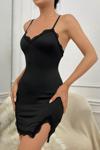 Beruflic Kadın Siyah Göğsü Ve Bacakları Dantelli Yırtmaçlı Şık Gecelik
