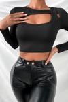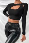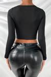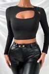 Kadın Siyah Göğüs Dekolteli Çapraz Askılı Uzun Kollu Crop Top Bluz