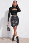 Beruflic Kadın Siyah Göğüs Dekolteli Uzun Kollu Cut Out Crop Top Bluz