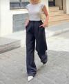 Kadın Siyah İnce Çizgili Palazzo Pantolon
