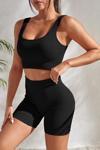 Beruflic Kadın Siyah Kalın Askılı Yüksek Bel Şortlu Gecelik Takımı
