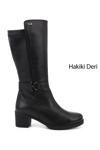 Kadın Siyah Kalın Topuklu Hakiki Deri Çizme