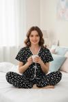 Beruflic Kadın Siyah Kalp Desenli Fiyonklu Kısa Kollu Uzun Pijama Takımı