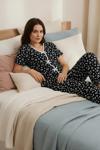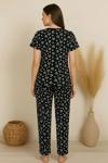 Kadın Siyah Kalp Desenli Fiyonklu Kısa Kollu Uzun Pijama Takımı