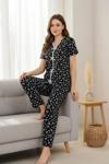 • Kadın Siyah Kalp Desenli Fiyonklu Kısa Kollu Uzun Pijama Takımı, sade şıklığı ve konforu bir araya getiriyor.
