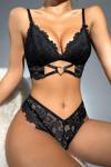 Lumiart Kadın Siyah Kalp Tokalı Çapraz Lastik Detaylı Dantel İç Çamaşır Takımı