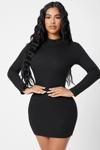 Kadın Siyah Kaşkorse Balıkçı Yaka Uzun Kollu Bodycon Mini Elbise
