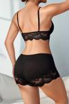 İç Giysim Kadın Siyah Kaşkorse ve Dantel Detaylı Şortlu Gecelik Takım