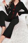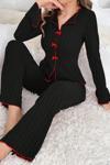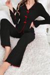 Beruflic Kadın Siyah Kırmızı Biyeli Ve Fiyonklu Uzun Kollu Mevsimlik Pijama Takımı