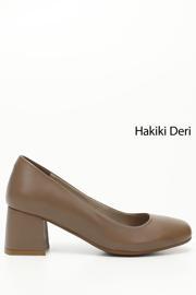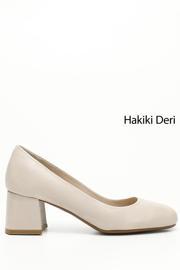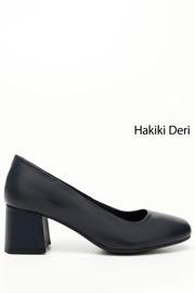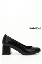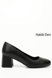 Gönderi(r) Kadın Siyah Küt Burun Orta Kalın Topuklu Hakiki Deri Ayakkabı