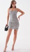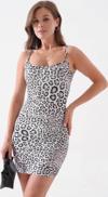 Şıklığı ve rahatlığı bir arada sunan Kadın Siyah Leoparlı İnce Askılı Likralı Elbise, gardırobunuzun vazgeçilmez parçalarından biri olmaya aday.