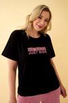 - Yazılı kapri pijama altı ve uyumlu tişört bulunmaktadır.