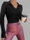 Kadın Siyah Polo Yaka Parmak Detay Triko Bluz 2047