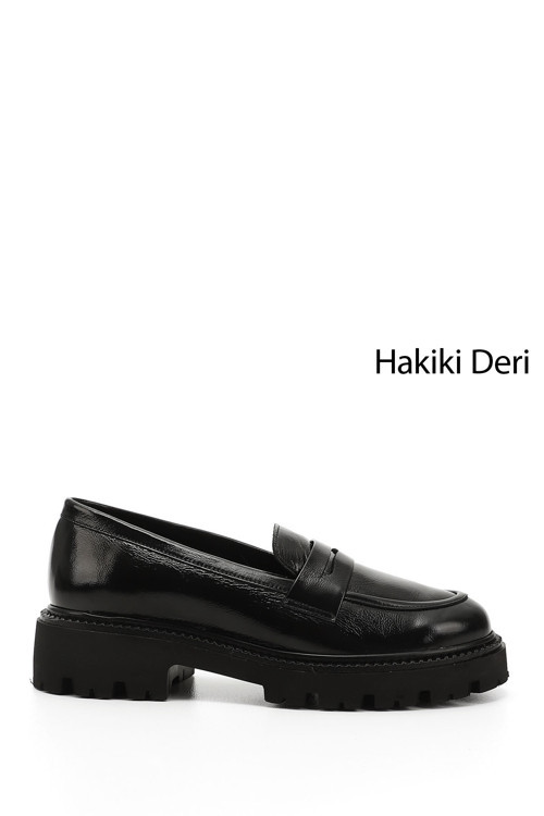 * Gön Hakiki Deri Yuvarlak Burun Loafer Kadın Günlük Ayakkabı