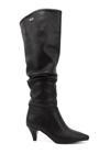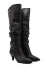 * Gön Suni Deri Sivri Burun Körüklü İnce Topuklu Kadın Çizme