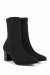 * Gön Suni Deri Sivri Burun Kalın Topuklu Streç Bot