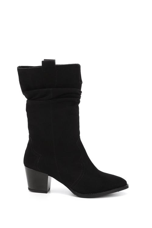 * Gön Suni Deri Sivri Burun Topuklu Körüklü Western Kovboy Kadın Günlük Kısa Çizme