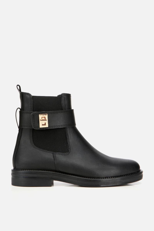 Kadın Siyah Tokalı Lastik Detaylı Düz Bot