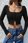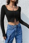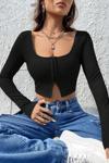 Kadın Siyah Uzun Kollu Agraflı Göğüs Ve Göbek Dekolteli Crop Top Bluz
