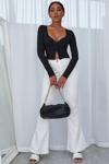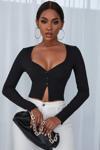 Kadın Siyah Uzun Kollu Düğmeli Göğüs Ve Göbek Dekolteli Crop Top Bluz