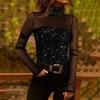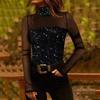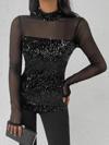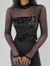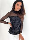 Kadın Siyah Uzun Kollu Kolları Ve Dekolte Tül Ve Payet Detay Balıkçı Yaka Bluz