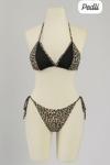 Beruflic Kadın Siyah Ve Leopar Detaylı Yandan Bağlamalı Bikini Takımı