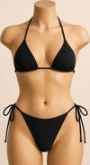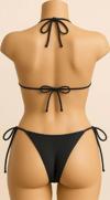 Kadın Siyah Yandan ve Boyundan Bağlamalı Bikini Mayo Takımı