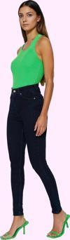 Yüksek bel tasarımı, belinizi ince gösterirken, skinny kalıbı da bacaklarınızı daha uzun ve ince göstermeye yardımcı olur. İncecik ve esnek kumaşı sayesinde rahat hareket etmenizi sağlar. Düz dokusu ve lacivert rengi ile her türlü üst giyimle mükemmel bir uyum yakalayabilirsiniz. Tüm mevsimlerde rahatlıkla kullanabilirsiniz. Spor ayakkabılarınızdan şık topuklu ayakkabılarınıza kadar her şeyle kombinleyebileceğiniz çok yönlü bir parçadır.
