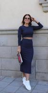 Kadın Soft Kaşkorse Kumaş Bluz Ve Yırtmaç Detaylı Etek Ikili Takım