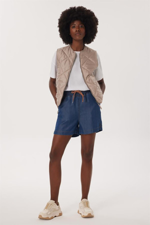 Lela Pamuk ve Keten Karışımlı Slim Fit Yelek Şort Bayan Takım 5866118 BEJ