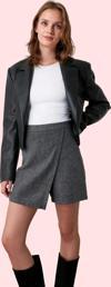 PayBuy Kadın Şort Etek Dokuma Kaşe Balık Sırtı Desen Kemerli Kışlık Günlük Yaz Aylarının Vazgeçilmezi