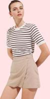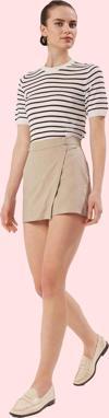 Rahatlığı ve şıklığı bir arada sunan bu bej şort etek, yaz aylarının en gözde parçalarından biri olmaya aday. %100 pamuk gabardin kumaştan üretilen bu etek, nefes alabilir yapısı ve yumuşak dokusuyla gün boyu konfor sağlar. Normal bel yüksekliği ve kısa boyuyla modern ve feminen bir stil yaratırken, geniş paça tasarımıyla da özgürce hareket etmenizi mümkün kılar. Düz deseni ve bej rengi ile her türlü kombinasyon için idealdir.