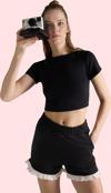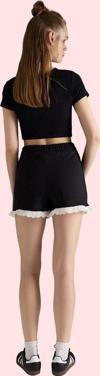Bu sezonun trend parçalarından biri olan yüksek bel, boru paça, kısa boy şort ile tanışın! 2 iplik penye dokuma kumaştan üretilen bu şort, gün boyu konfor ve rahatlık sunar. Nefes alabilen yapısı sayesinde yaz aylarında serin kalmanıza yardımcı olur. Yüksek bel tasarımı ile vücut hatlarınızı mükemmel bir şekilde ortaya koyarken, kısa boyu ile modern ve şık bir görünüm elde etmenizi sağlar. Renk bloklu deseni ve dantel detayı ile tarzınızı yansıtabilir, kombinlerinize farklı bir hava katabilirsiniz.