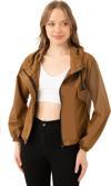 Freemen Kadın Dik Yaka Su ve Rüzgar Geçirmez Oversize Crop Mevsimlik Yağmurluk Rüzgarlık