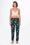 Kadın Süet Ayıcık Desenli Pijama Tek Alt, yeşil tonları üzerine yerleştirilmiş sevimli ayıcık ve yıldız desenleriyle huzurlu bir uyku ve rahat bir ev stili sunar.