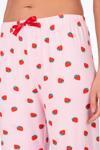 Kadın Süet Çilek Desenli Pijama Tek Alt, tatlı çilek desenleriyle enerjik ve neşeli bir tarz sunar.