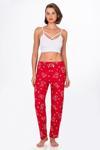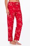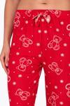 Kadın Süet Kırmızı Ayıcık Desenli Pijama Tek Alt, canlı kırmızı rengi ve sevimli ayıcık desenleriyle enerjik bir görünüm sunar.