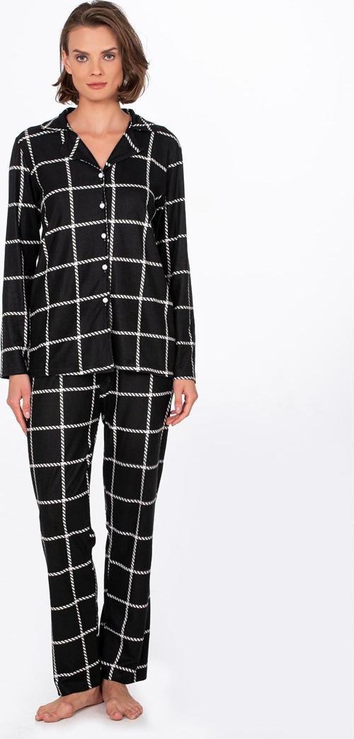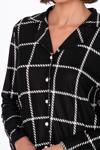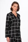 Kadın Süet Önden Düğmeli Pijama Takımı | Beyaz Çizgili