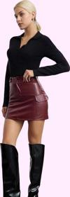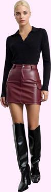 Günlük yaşamınızda şıklığı ve konforu bir araya getiren bu bordo mini etek, benzersiz tasarımıyla dikkatleri üzerinize çekecek. Yüksek kaliteli suni deri malzemesiyle üretilen etek, hem dayanıklı hem de şık bir görünüm sunuyor. Kalem kalıbı sayesinde vücut hatlarınızı zarifçe sararak feminen bir siluet oluştururken, yüksek beliyle de belinizi ince gösteriyor. Pratik cep detayı ise kullanışlılığı artırıyor.