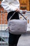 Sanmorris marka suya dayanıklı krinkıl kumaş geniş hacimli çapraz modelimiz stoklarımızdadır.; ; Boy: 26cm ; En: 32cm ; Taban Genişliği: 12 cm ; Birinci kalite suya dayanıklı kumaş, astar ve aksesuarlar kullanılarak üretilmiştir.; Kanserojen testlerinden başarıyla geçmiştir.; Geniş hacmi sayesinde seyahatlerinizde, okulda veya günlük kullanımlarınızda çok rahat kullanabileceğiniz bir modeldir.; Kullanılan kumaşın hafif yapısıyla birlikte yüklerinizi azaltabileceksiniz.; Omuz askılarında dayanıklılık için kalın askılar kullanılmış olup dikişleri yüksek sağlamlıktadır.; İç malzemesi komple birinci kalite astar kaplıdır.; Bir iç olmak üzere toplam 5 adet metal fermuarlı bölmesi mevcuttur.; Ayrıca telefon, ruj, parfüm, anahtar gibi küçük, her zaman erişmek istediğiniz eşyalarınız için iki açık ve ayrı bölmesi mevcuttur.; Seçtiğiniz çanta renginin birebir aynı renginde olmak üzere maymuncuk aksesuarı ile birlikte gönderim sağlanmaktadır.; Maymuncuk aksesuarının kancalı yapısı sayesinde kolayca çıkarıp takabilirsiniz.; Temizliğini nemli bez ile yapmanızı rica ederiz.; ;