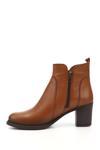 * Gön Hakiki Deri Yuvarlak Burun Topuklu Fermuarlı Püsküllü Kadın Günlük Bot