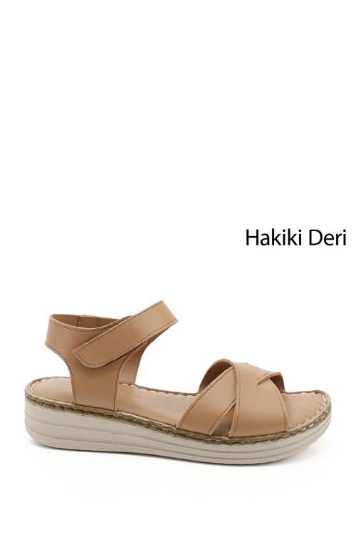 * Cırt Bantlı Dolgu Topuklu Hakiki Deri Comfort Sandalet