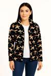 Mzp Kartan Kadın Tam Fermuarlı Desenli Polar Sweat – Siyah Multicolor Figür Desen Yakalı, Uzun Kollu, Oversize