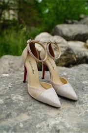 Kadın Elegant Ayakkabı Çift Bant Kısa Topuklu Ayakkabı Özel Tasarım Abiye Ayakkabı - Image 1
