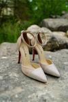 Kadın Taş Detaylı Bilekten Bağlamalı İnce Topuklu Stiletto Abiye Ayakkabı Zarif Şık Tasarım